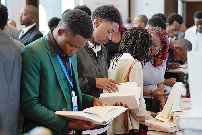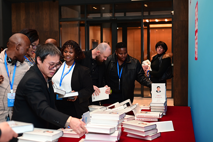 Guests at the China-Kenya Readers Forum on Xi Jinping: The Governance of China are presented with copies of the book in Nairobi, Kenya, on 1 December