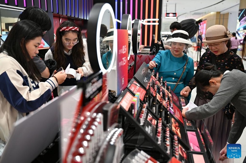 Customers shop at a duty-free store in Haikou, south China's Hainan Province, on Jan. 17, 2026. According to Haikou Customs, from Dec. 18, 2025 to Jan. 17, 2026, the duty-free sales reached RMB 4.86 billion, up 46.8 percent year on year. (Xinhua/Guo Cheng)