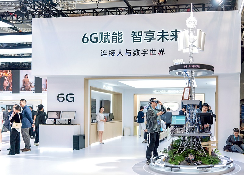 At China Telecom’s 2025 Digital Intelligence Technology Ecosystem Conference in Guangzhou, Guangdong Province, visitors at the Vivo booth immerse themselves in the performance leap that 6G technology brings to mixed reality applications by wearing the Vivo Vision mixed reality headset on December 5, 2025.