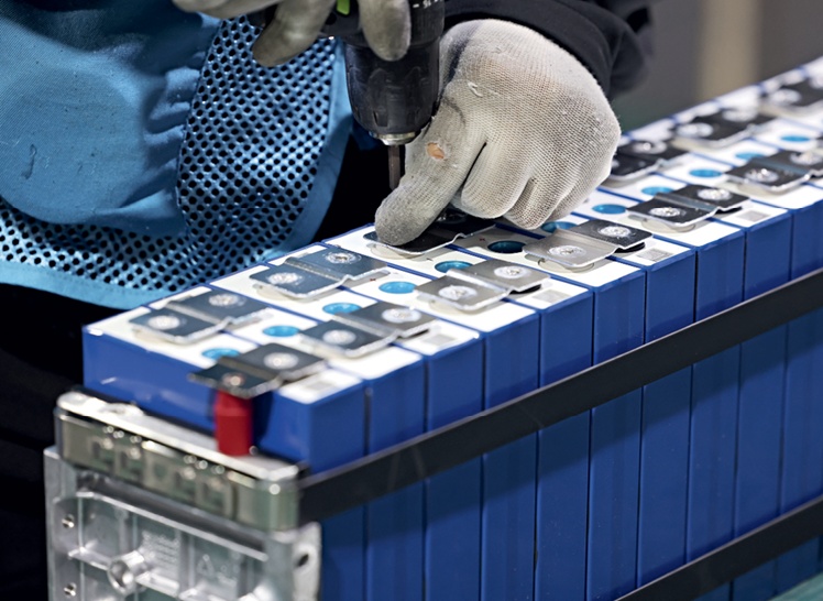 A production line for lithium batteries and solid-state batteries at Wotai Energy Co., Ltd. in Nantong, Jiangsu Province, on March 5, 2024.