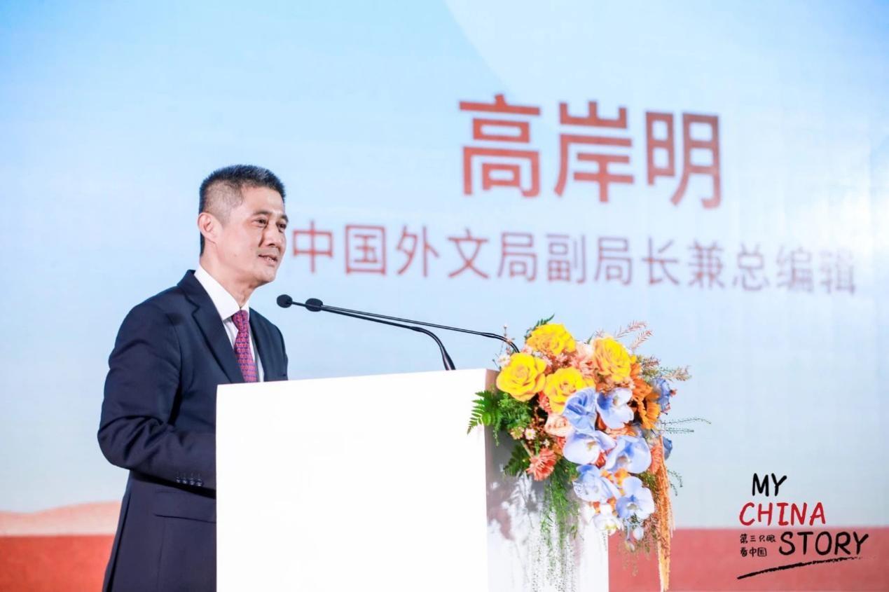 Gao Anming, vice president of China International Communications Group (CICG), delivers a speech at the award ceremony of the 5th "My China Story" International Short Video Competition in Zhengzhou, Henan province, on Oct. 25, 2023. [Photo/CICG]