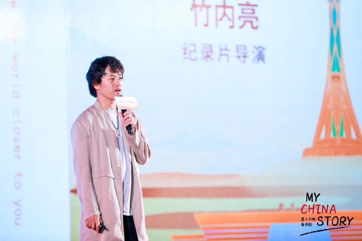 Japanese filmmaker Takeuchi Ryo shares his experience at the award ceremony of the 5th "My China Story" International Short Video Competition in Zhengzhou, Henan province, on Oct. 25, 2023. [Photo/CICG]
