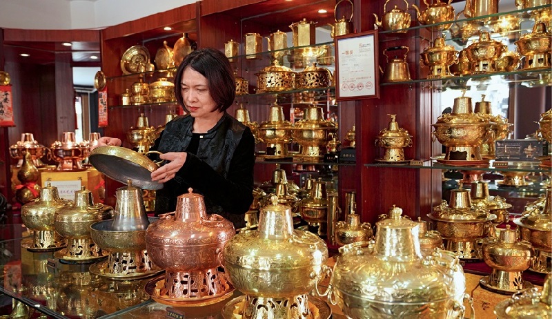 The new generation of inheritors has become a new force for driving innovation in the industry. In the past, Li’s factory mainly produced traditional goods. “Now we also have new products, such as induction cooker, to adapt to the needs of the market,” said Li. Furthermore, Li’s team is experimenting with new design ideas. For example, they incorporate local elements from Datong into pot patterns. This has resulted in many new models of copper productions. “Today we offer pots featuring landmarks from our city, such as the Flying Apsaras of the Yungang Grottoes, as well as take inspiration from classic motifs of bronzeware from the Shang and Zhou dynasties (1600-256 B.C.). Our hope is to bring artistically valuable everyday objects into the lives of our customers. In addition, our products serve as excellent advertising for our city,” said the artisan.