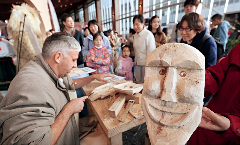 The sparks of civilizational interplay were evident at the gathering. For example, the inheritors of Capoeira, a dancelike martial art of Brazil, invited the audience to dance together, while the Angolan inheritors played traditional instruments and taught visitors to provide the rhythm. A long queue was always present at the booth of Georgian traditional printing and dyeing. The Hungary booth was surrounded by big crowds eager to take photos with their Buzo masks. Chinese printmakers and Dutch artists improvised with an art collaboration, and local workers could be seen beating African drums during their breaks.
