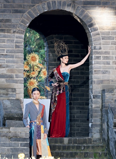 At the closing event of the Beijing Fashion Week in 2025, Zhu Bingren presents his collection “Craftsman Fusion Wear” at the Simatai section of the Great Wall. The guiding leitmotif: Rong – Melting and Merging.