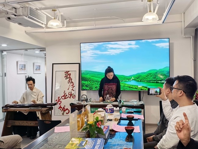 Luo Ziqing, an inheritor of Buyi tea culture and founder of Buyi Fairy Tea from southwest China’s Guizhou Province, demonstrated the tea-brewing techniques of Buyi Fairy Tea on site, inviting guests to sample the tea to an appreciative audience of Chinese and foreign guests.