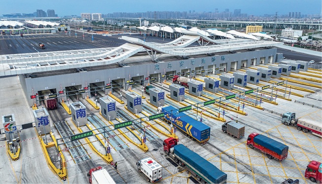 Outbound trucks orderly pass through the centralized inspection area of Haikou, Hainan Province.