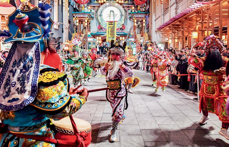 A performance of the intangible cultural heritage Yingge dance is staged at the Dongpo Old Wharf in Haikou, south China’s Hainan Province, on January 10, 2026.