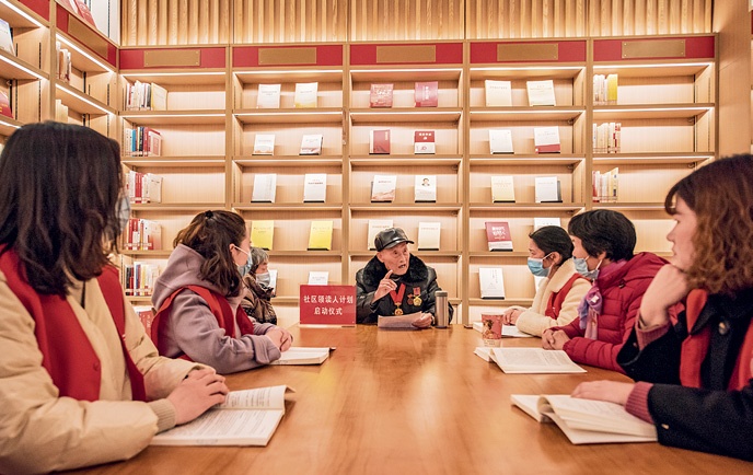 An octogenarian leads a community reading activity held at the Longting Book House. Xiao Benxiang