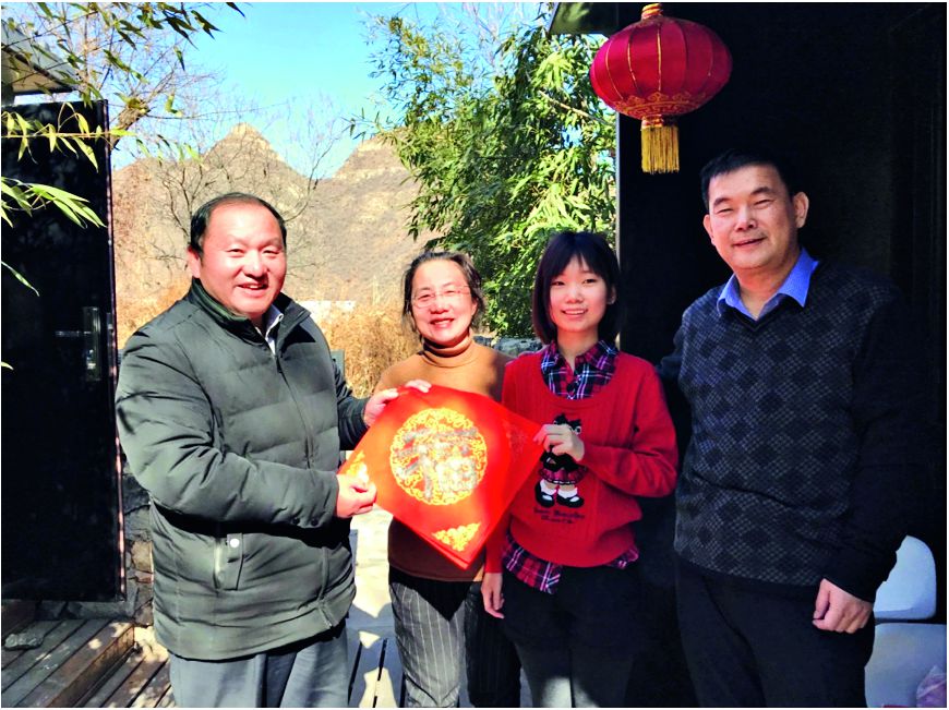 Duan Chunting presents visitors with a red fu poster. Photos by Ma Li