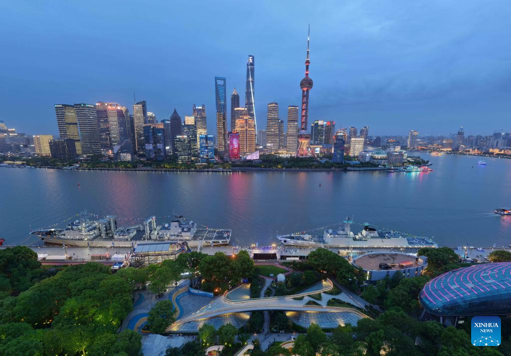 This aerial drone photo taken on April 21, 2026 shows people participating in a navy open-day event in east China's Shanghai. (Photo by Sun Wei/Xinhua)